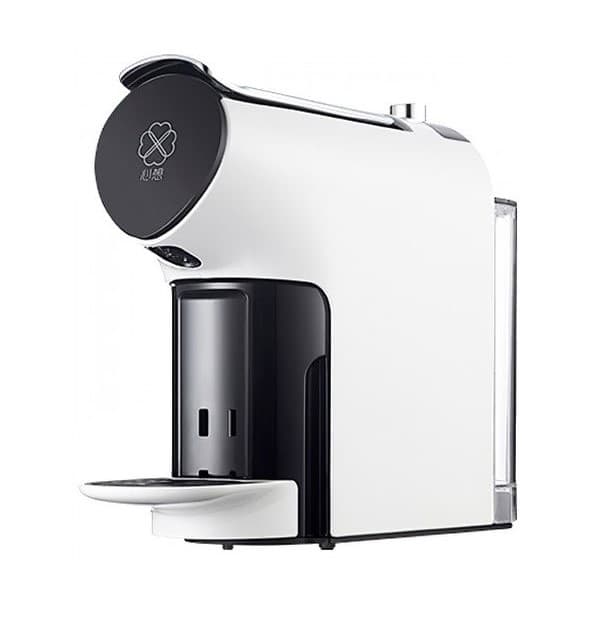 Капсульное устройство от Xiaomi выглядит компактно и выполнено в минималистичном дизайне на контрасте черного и белого. Как и у остальных участников рейтинга, резервуар для воды установлен сзади. Правда вмещает немного, всего 580 мл.