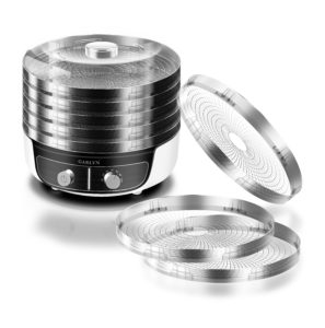 Модель отличается действительно высокой вместимостью: 8 уровней позволяют уместить здесь достаточное количество овощей и фруктов. Общая вместимость сушилки –32 литра, что является очень высоким показателем при средней вместимости конкурентов 20-25 л. GARLYN D-08 действительно позволит экономнее расходовать время на приготовлении, так как за 1 цикл справится с несколькими килограммами продуктов.